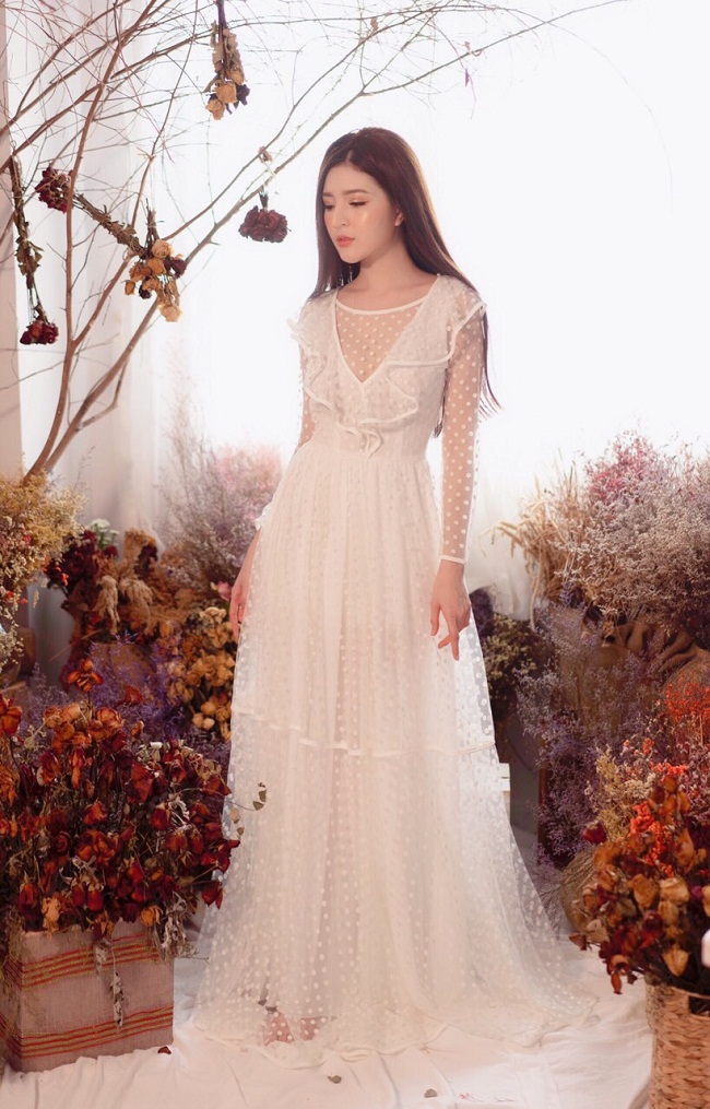 >Xem chi tiết và đặt hàng tại chuyên sỉ lẻ đầm cao cấp: Đầm xòe dài Hồ Ngọc Hà kiểu cổ tròn sang trọng