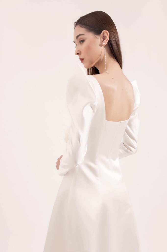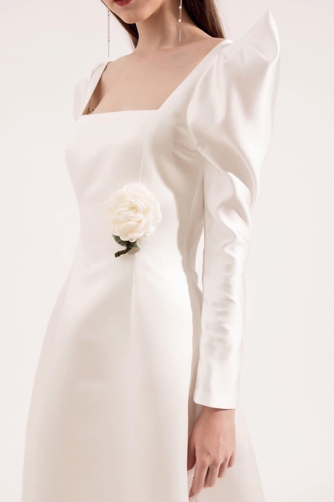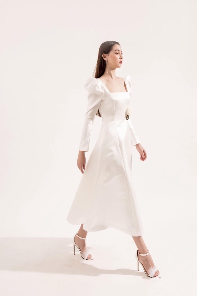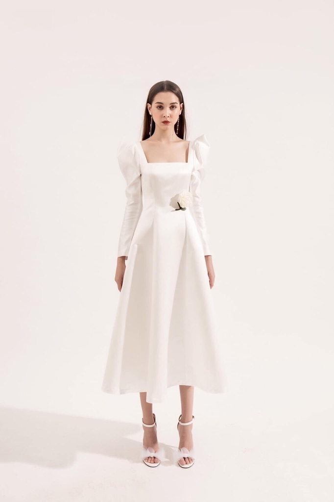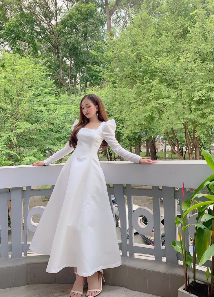 Đầm dạ hội kiểu tay phồng dài cổ vuông