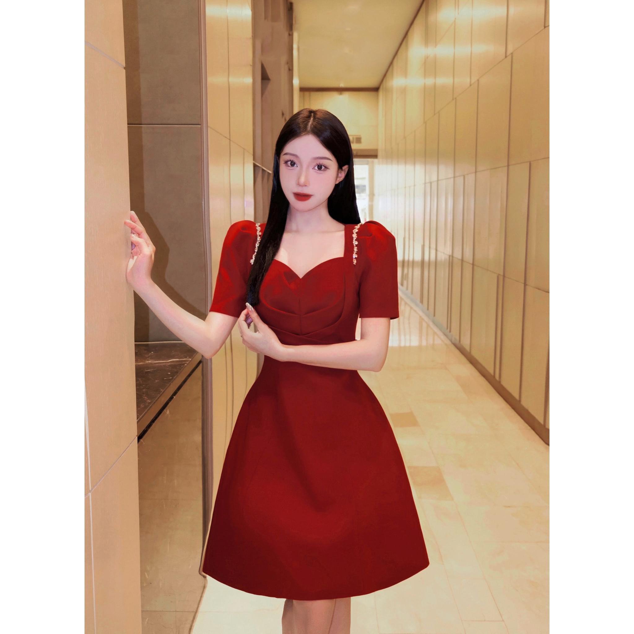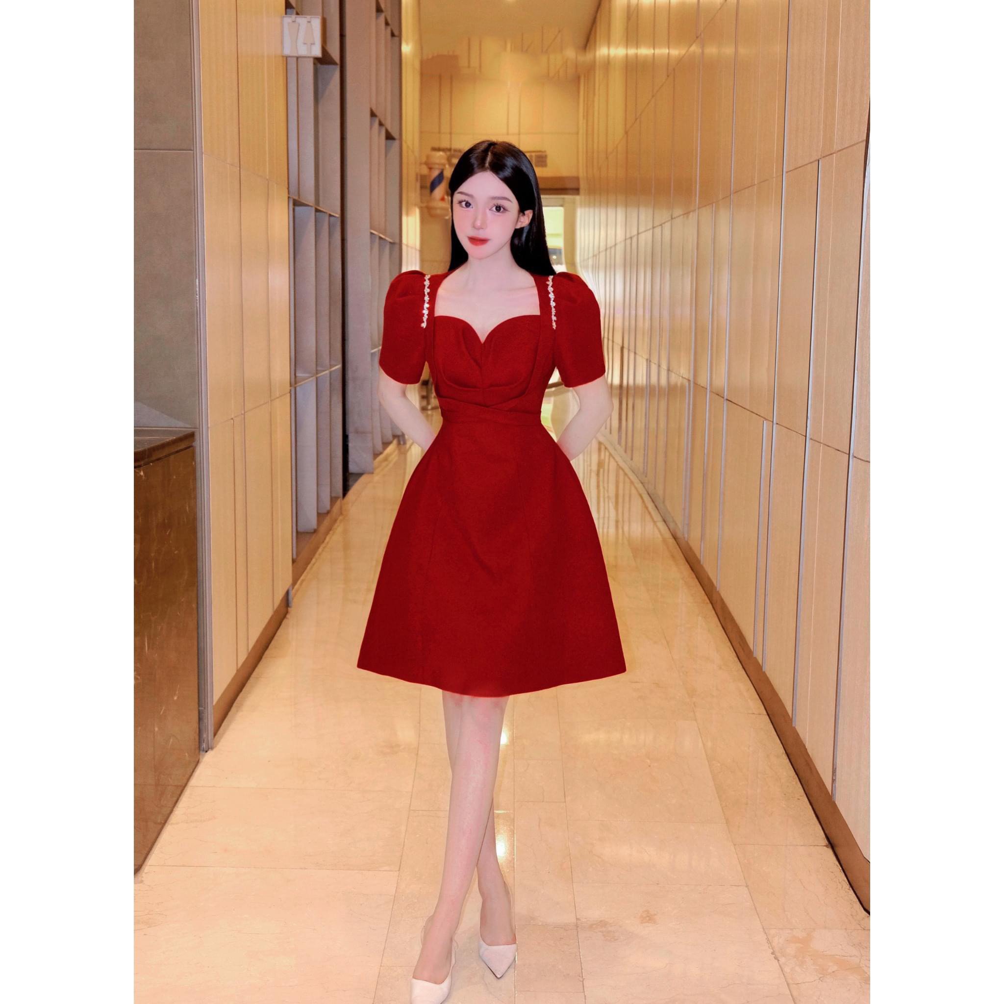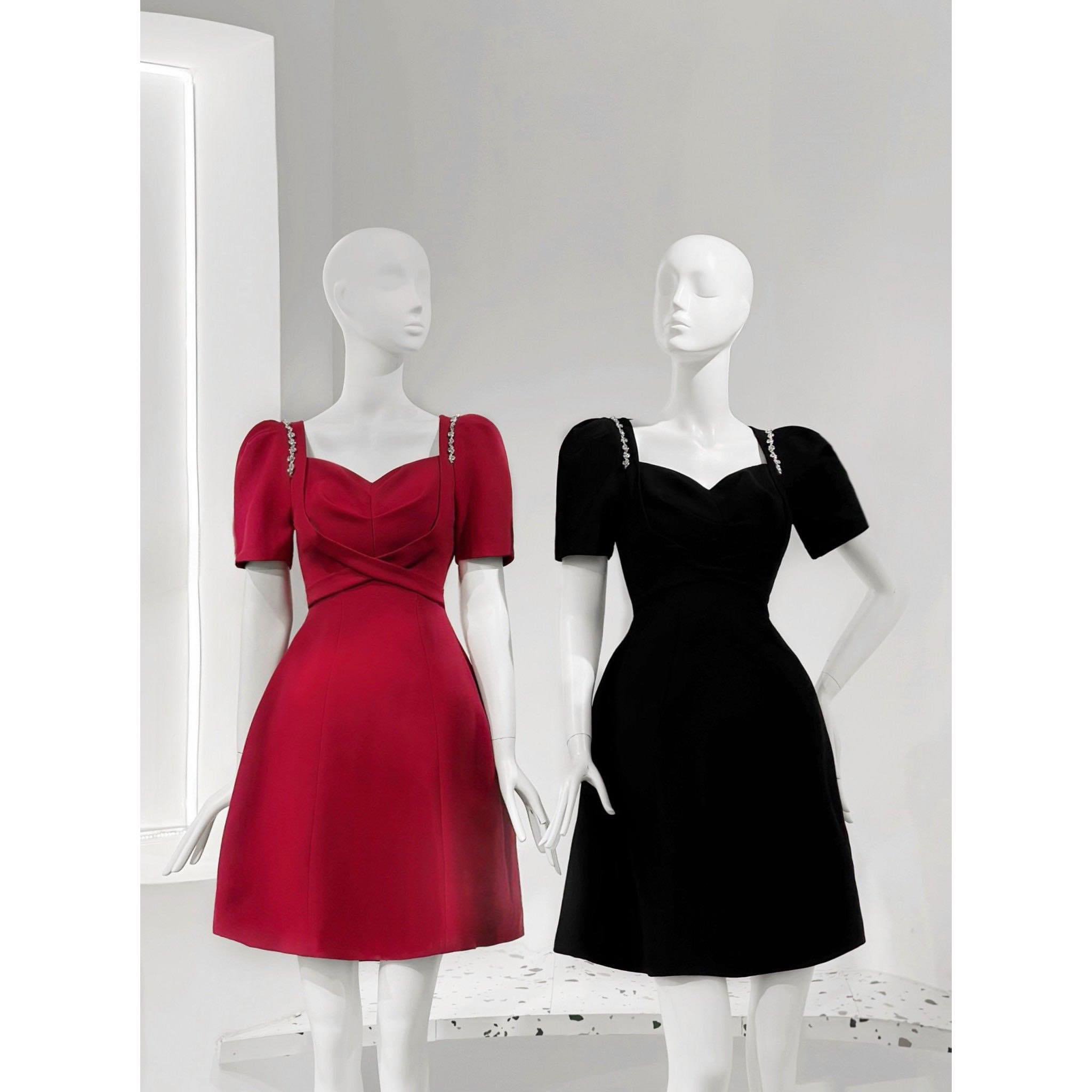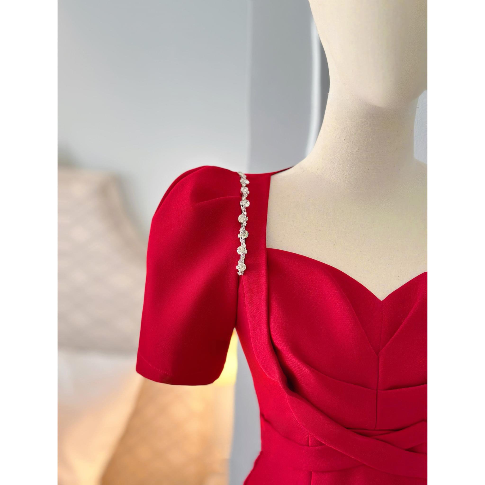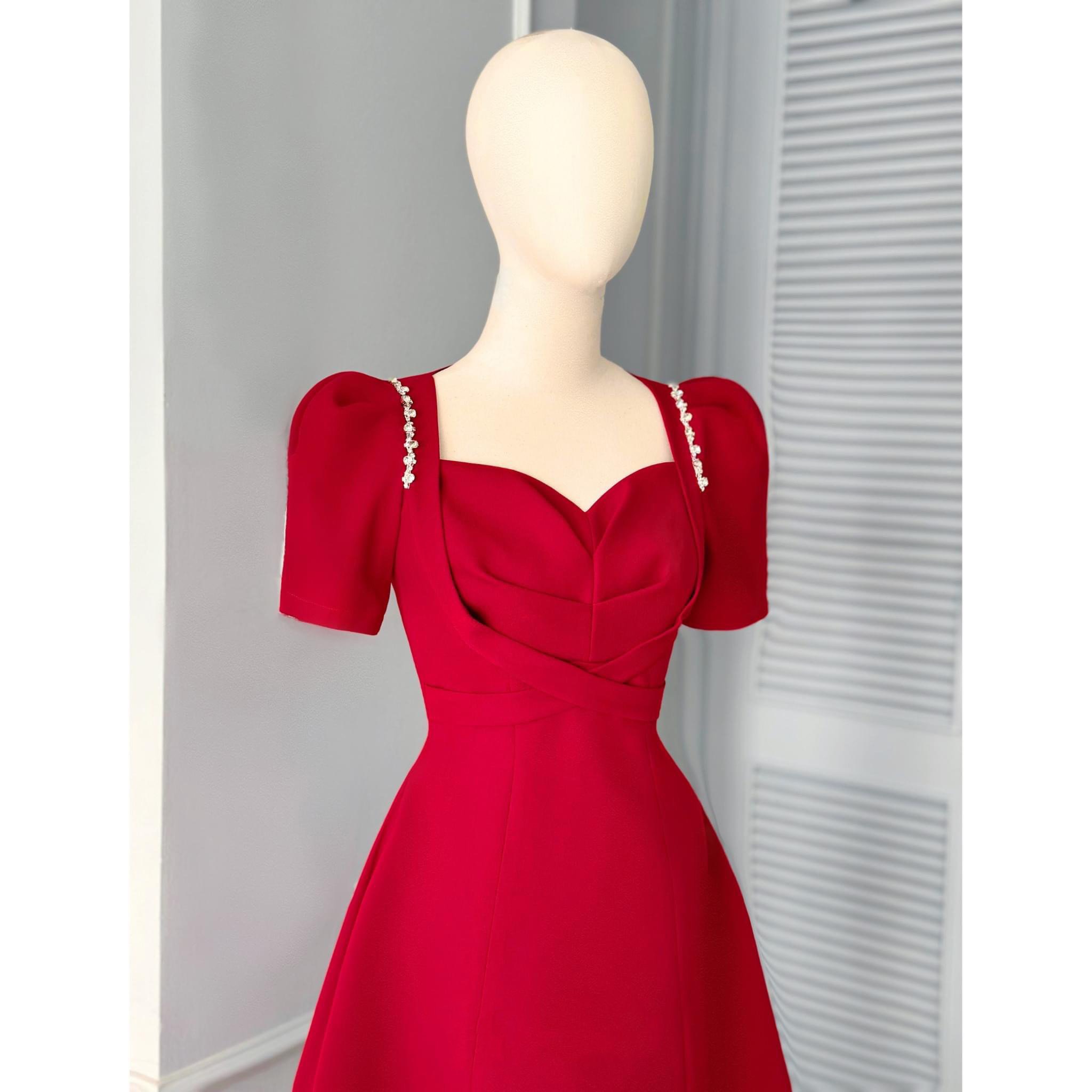 Đầm dáng xoè ngắn phối tay con đính đá sang trọng
