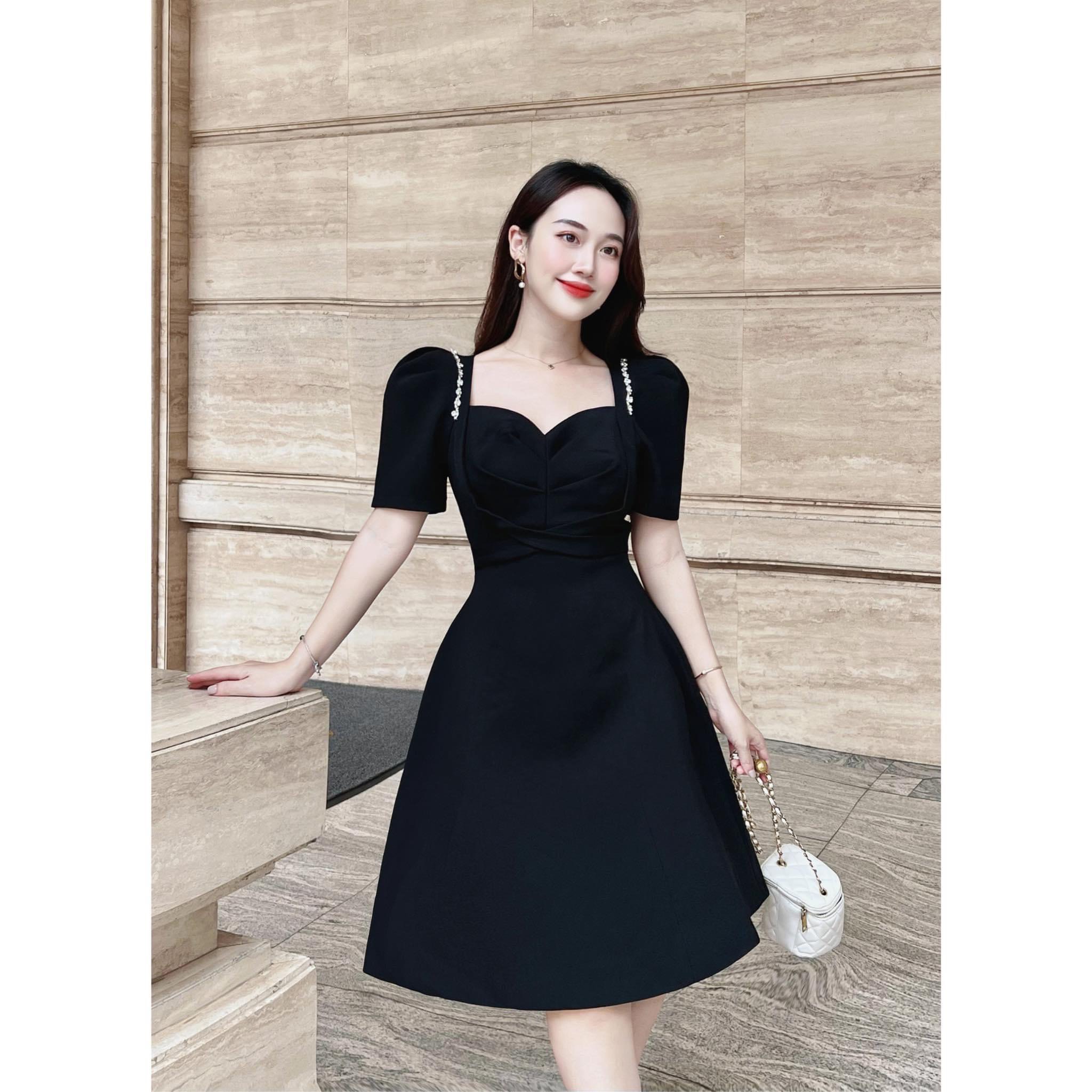 Đầm dáng xoè ngắn phối tay con đính đá sang trọng Alvin Store 2953
