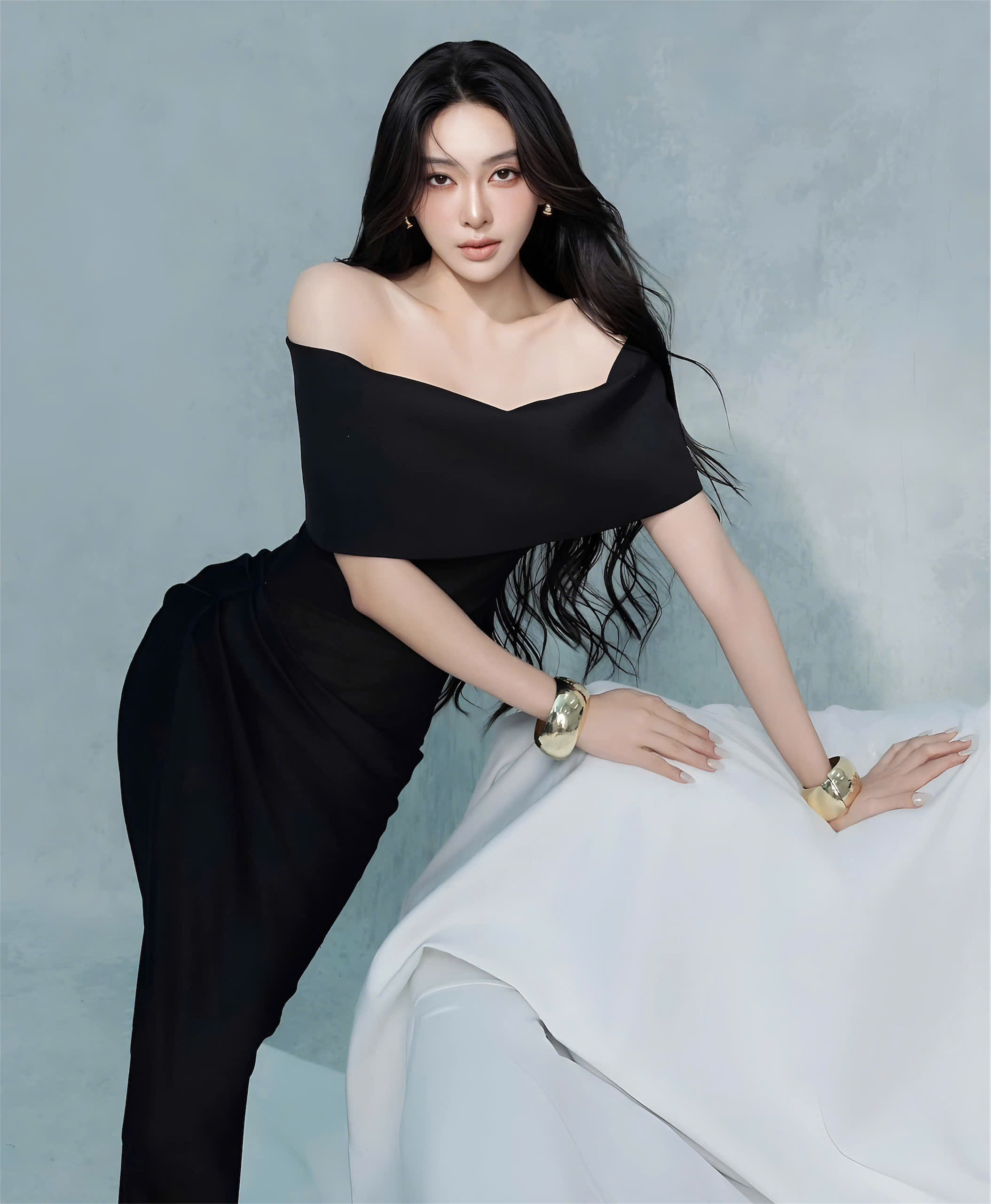 Đầm dự tiệc dáng dài vai ngang xếp ly eo sang trọng Alvin Store