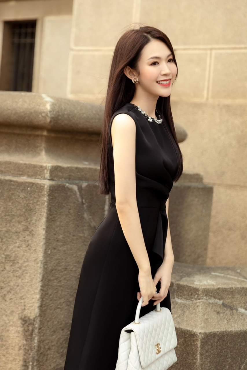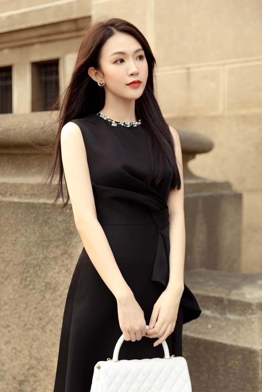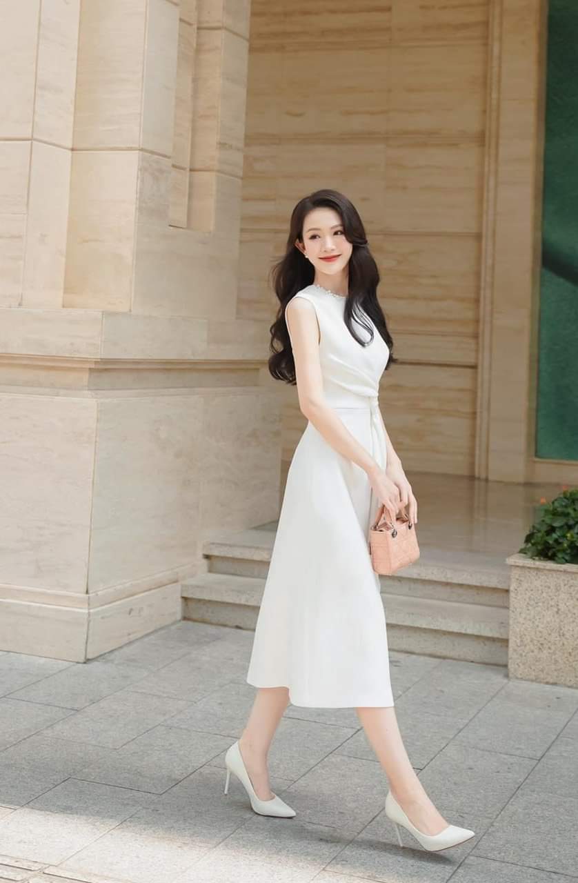 Đầm dự tiệc dáng xòe kiểu sát nách đính ngọc sang trọng