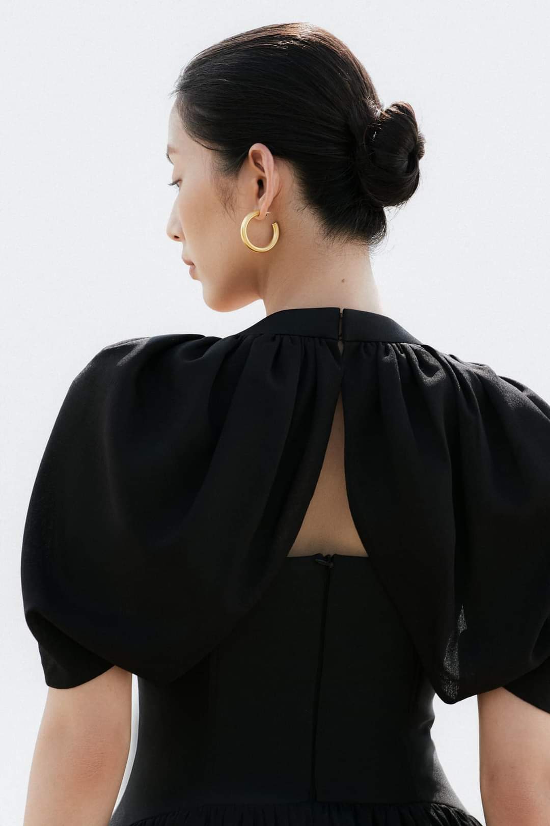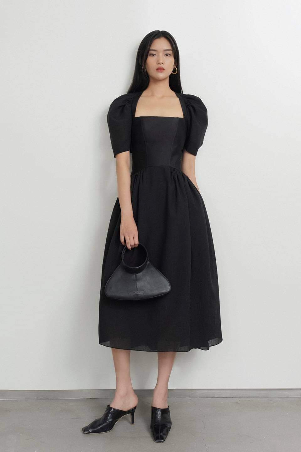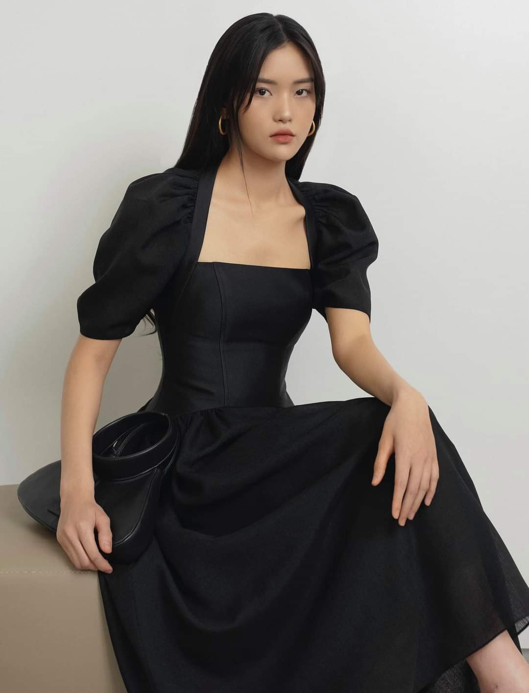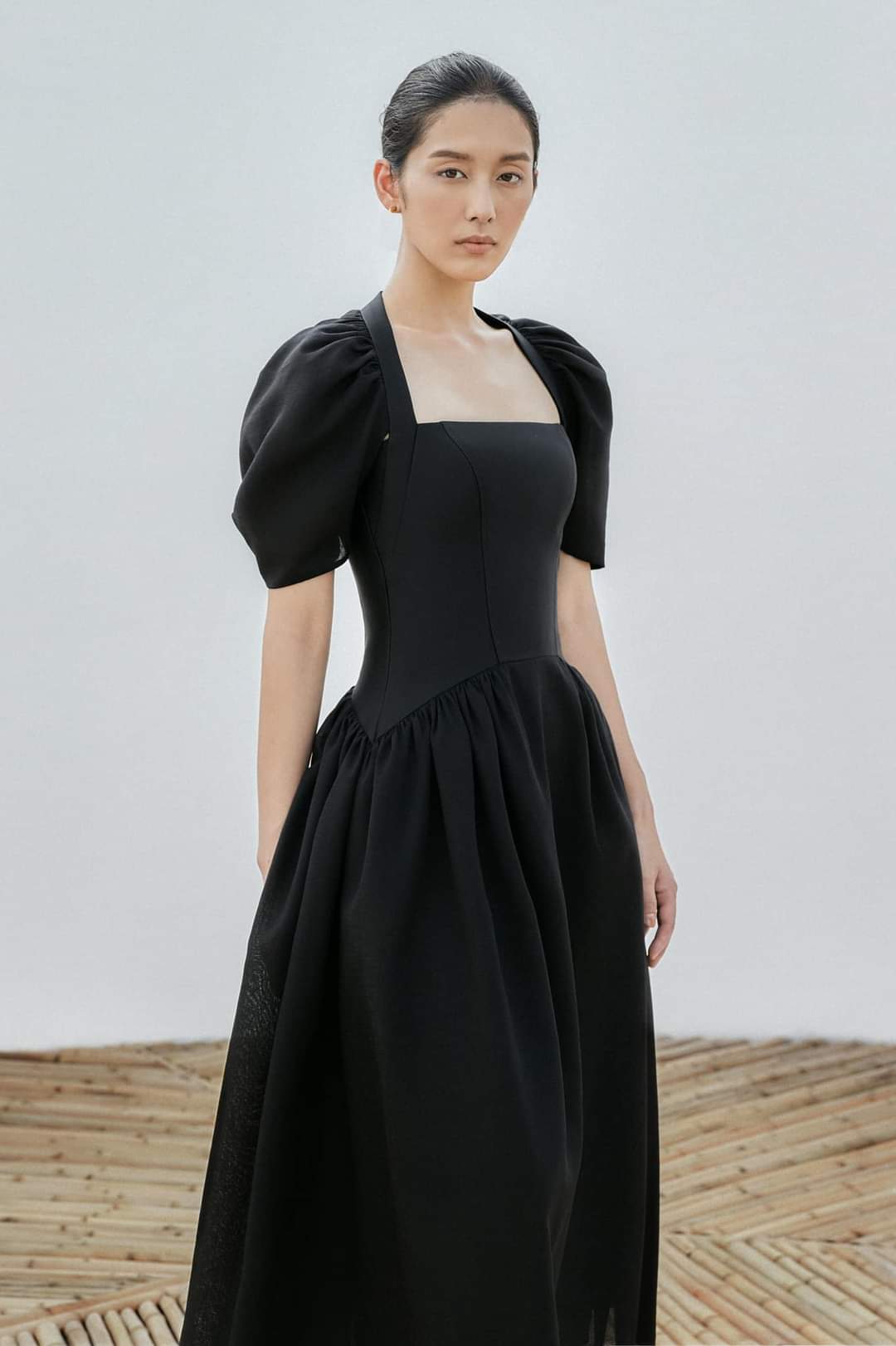 Đầm xòe dài cúp ngực tay phồng dự tiệc