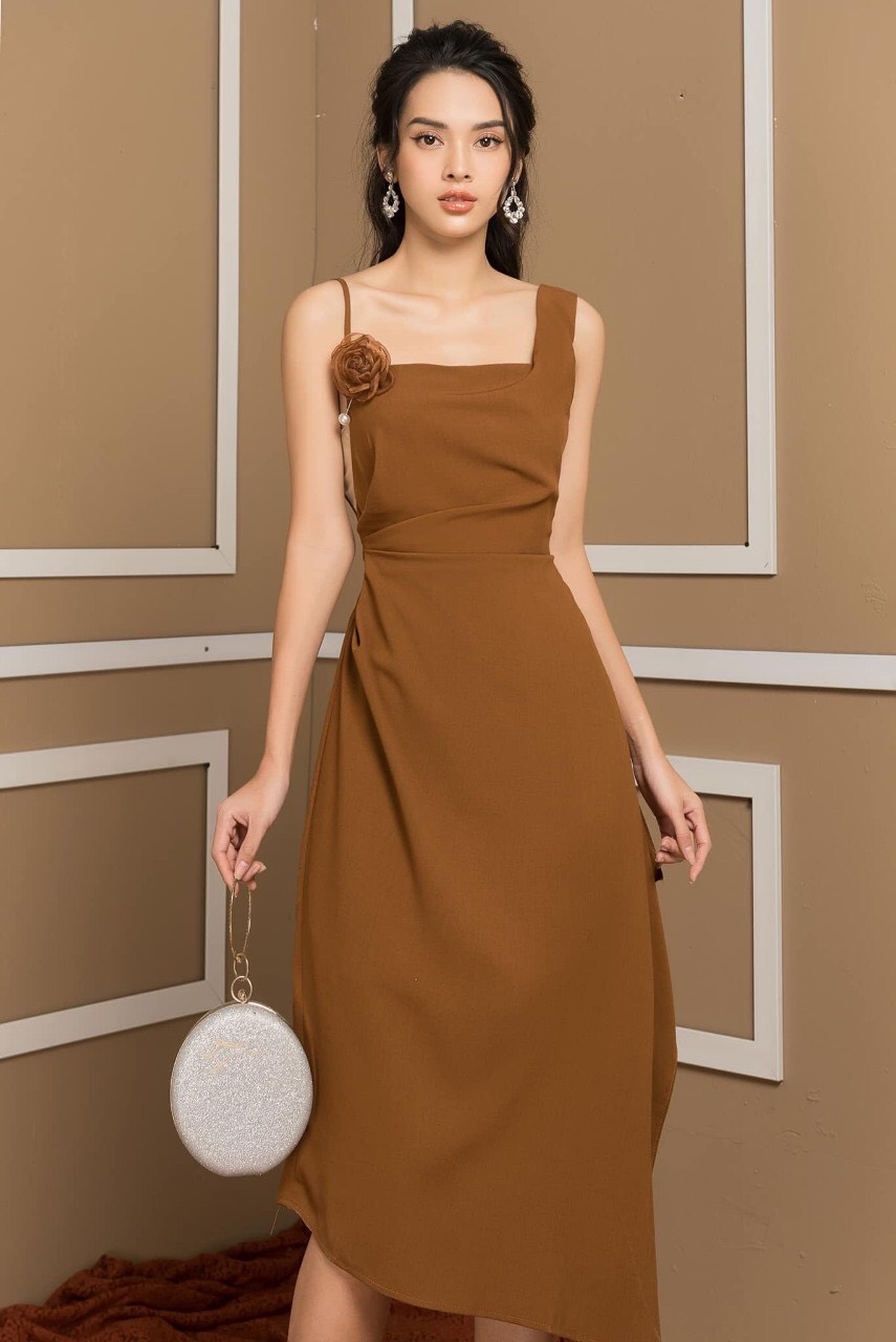 Đầm xòe kiểu 1 dây kèm hoa sang trọng