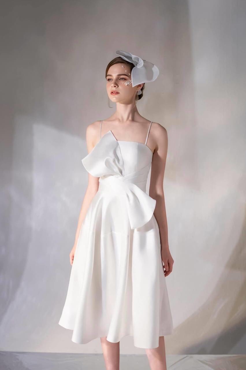 Đầm xoè kiểu hai dây cúp ngực nơ to