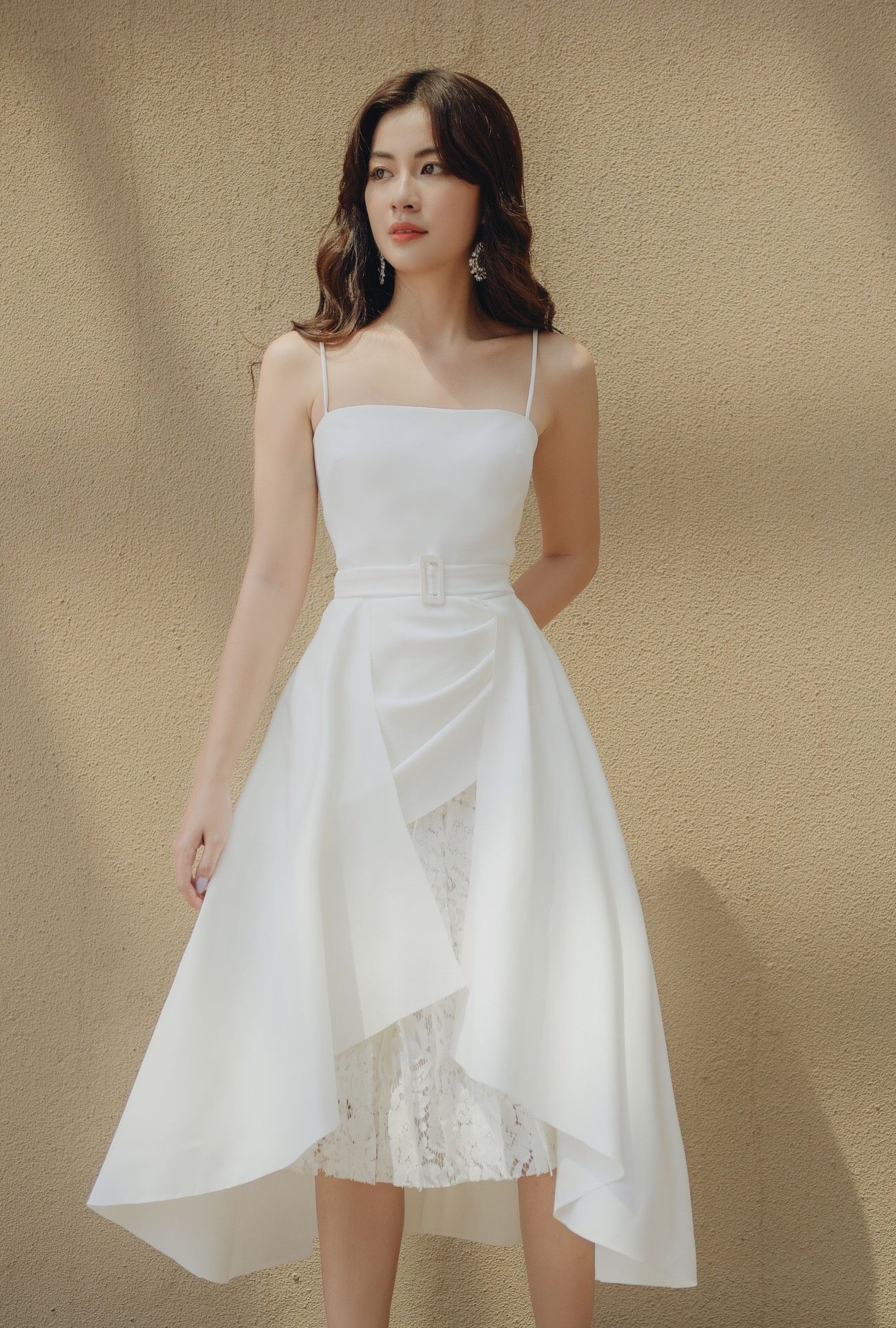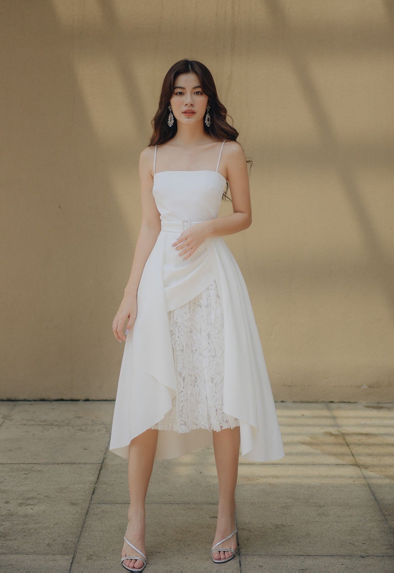 Đầm xòe kiểu hai dây cúp ngực phối ren