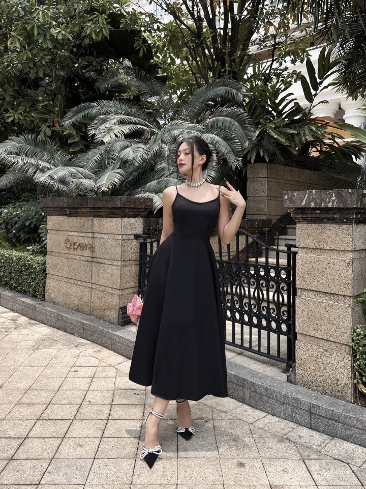 Đầm xòe kiểu hai dây hở lưng sang trọng