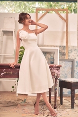 Đầm xoè kiểu hai dây phối hoa ngay vai