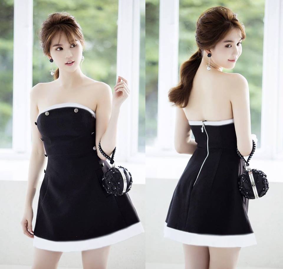 Sở hữu thân hình hoàn hảo cùng làn da trắng ngần không tỳ vết mà Ngọc Trinh còn có gu thời trang diện váy đen cực gợi cảm và lôi cuốn. Những khoảng cutout giúp người đẹp khoe lưng trần quyến rũ.