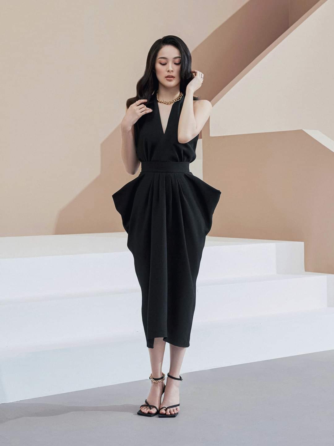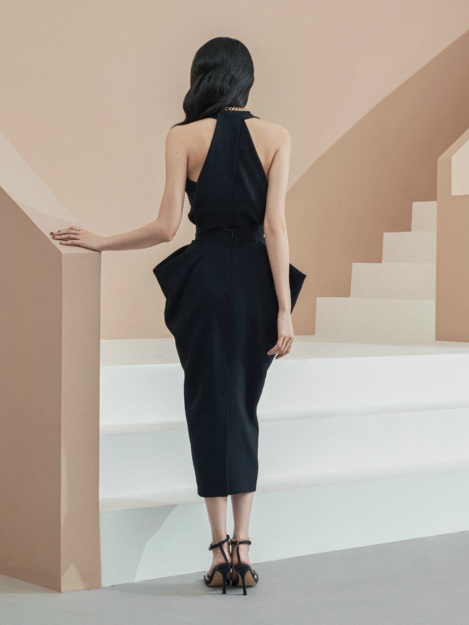 Set áo váy kiểu áo cổ yếm chân váy xếp ly phồng (ko kèm belt)
